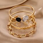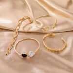 4 Pcs Set Trendy Jewelry Retro Acrylic Studded Exaggerated Women’s Fashion Combination Bracelet