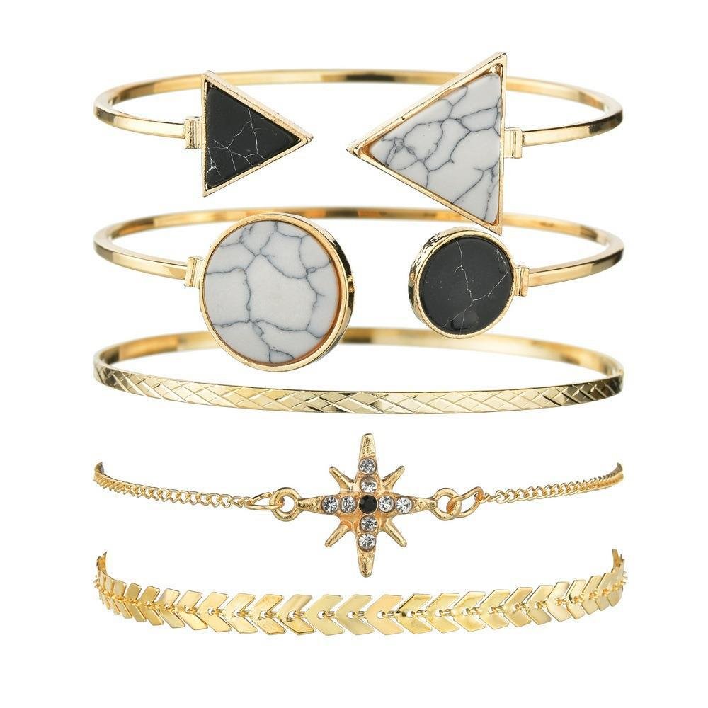 - পণ্যের ধরন: ট্রেন্ডি জুয়েলারি রেট্রো এক্রাইলিক স্টাডেড ৫ পিস ব্রেসলেট সেট