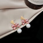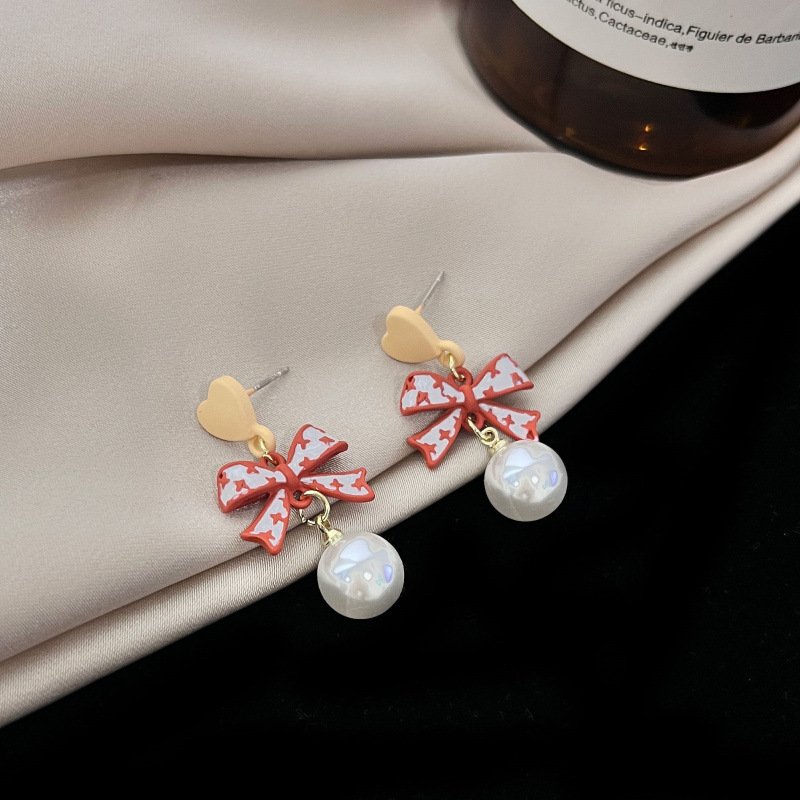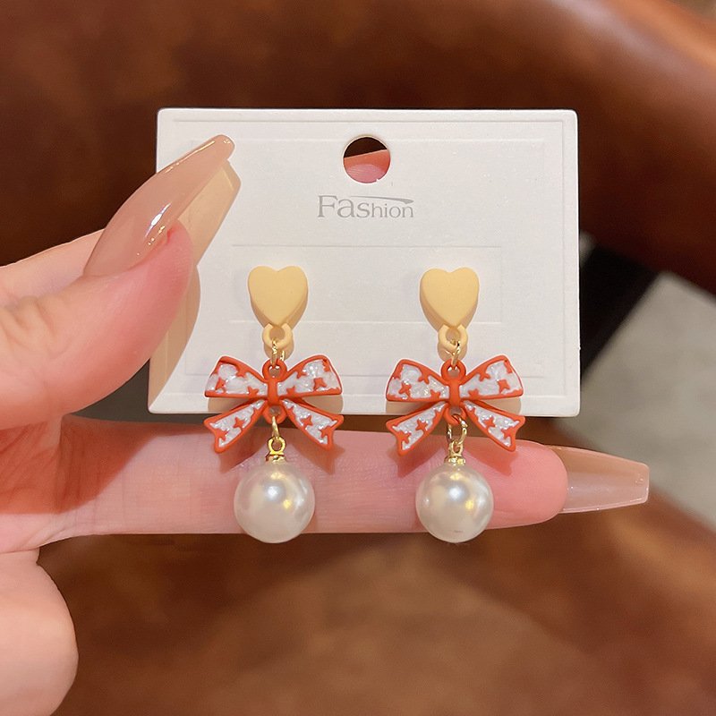 Luxury Personalized Simple Jewelry – Ladies 925 Sterling Silver Pearl Bow Heart Earring