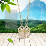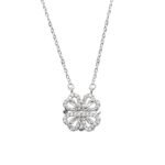 Magnetic Folding Heart Shaped Zircon Four Leaf Clover Pendant Necklace