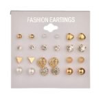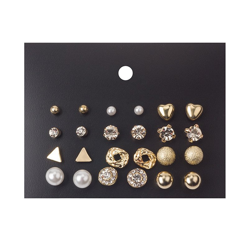 New Trendy 12 Pairs Pearl Stud Earrings Set Gold/Silver for Girls Simple Stylish