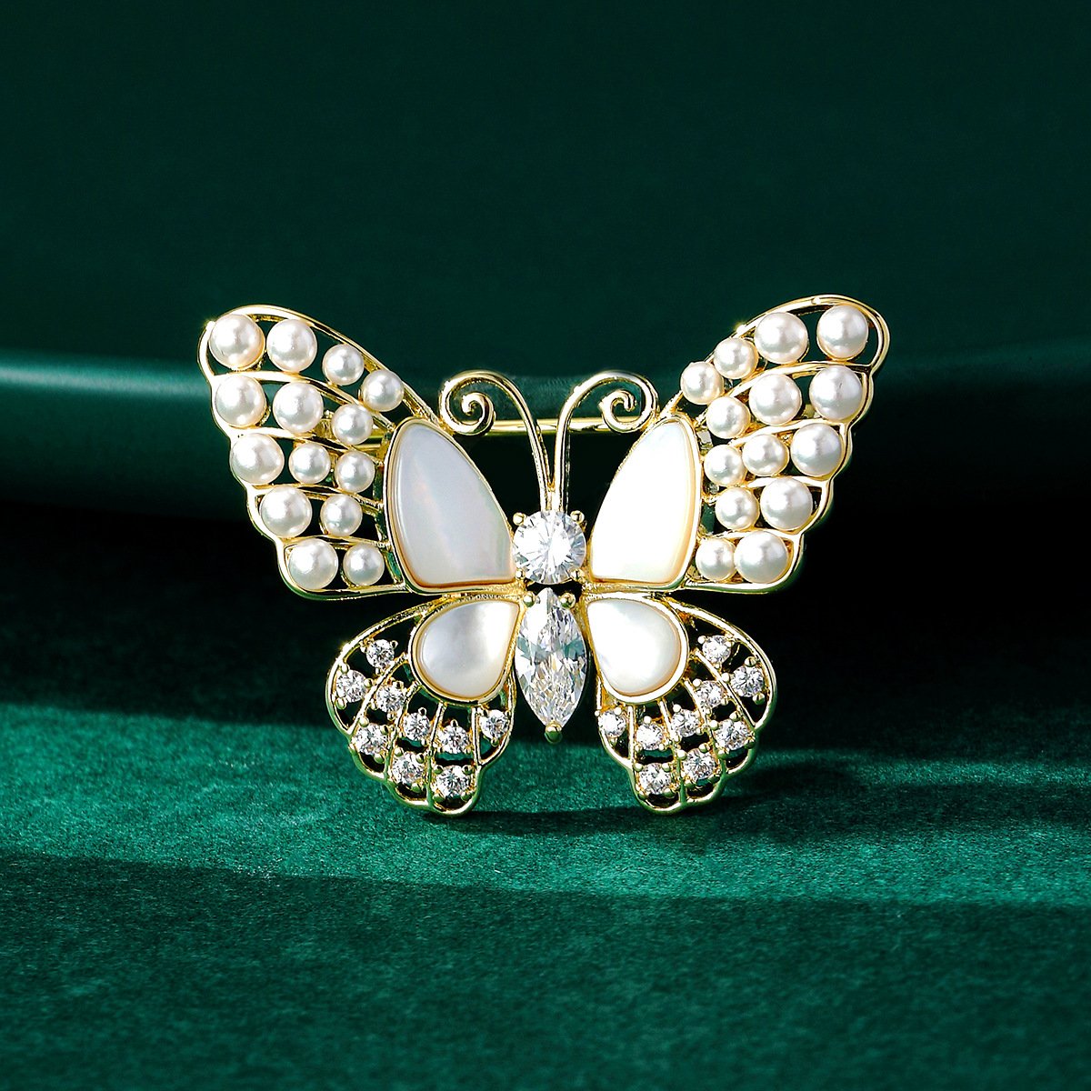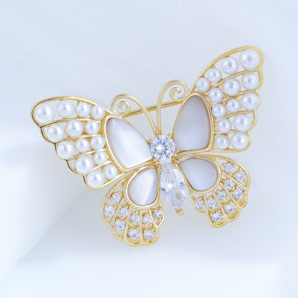 New Trendy Pearl Rhinestone Butterfly Hijab/Saree Brooch