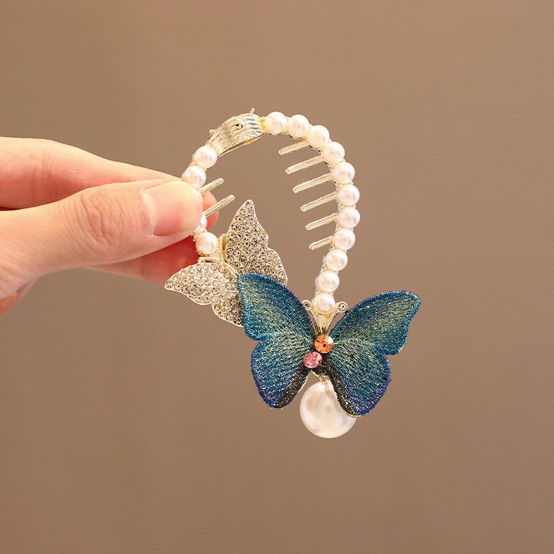 এতে প্রজাপতির ডিজাইনের সাথে কৃত্রিম মুক্তা ও ঝকঝকে রাইনস্টোন ব্যবহার করা হয়, যা চুলে একটি এলিগ্যান্ট ও ফ্যাশনেবল লুক দেয়।